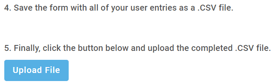 - Tip: This document will download as a .csv (coma separated value) file. It may be easier to save this file as an excel file if you use Microsoft or upload to Google Drive as a Google sheet so that you are able to fill in the rows as needed. Once you have completed filling out the document; you can save it as a .csv file to upload it to the platform.