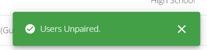 Once sessions have been deleted, click the red “unpair users” button to complete the pairing process. The green box at the bottom of the screen lets you know that these users have been successfully unpaired.